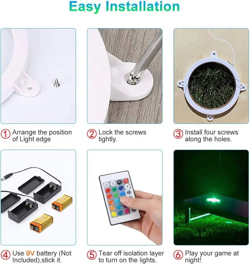 Spice up your boards with easy to install ultra-bright LED cornhole board lights. These LED lights are designed to fit any standard cornhole board hole of 6".